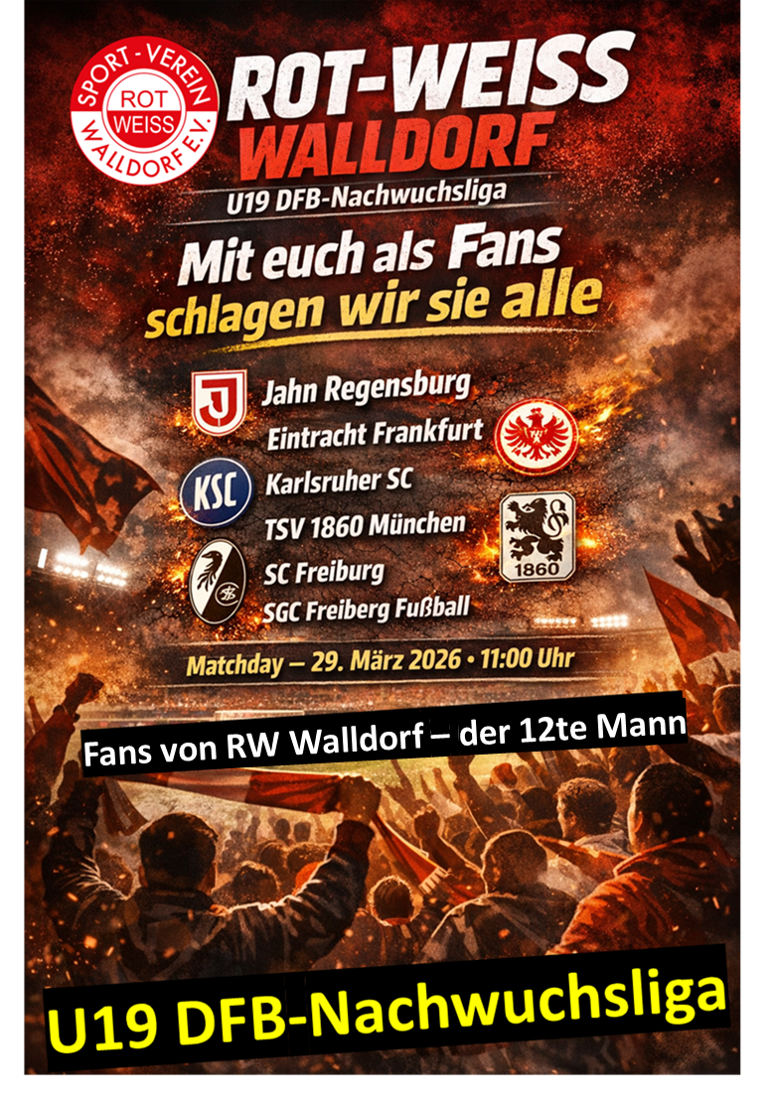 Die U19 von RW Walldorf hat sich in der Vorrunde der Hessenliga deutlich für die DFB-Nachwuchsliga qualifiziert und ist dort mit drei Siegen und einer Niederlage gegen 1860 München Tabellenführer. Bundesligateams sind derzeit die Gegner mit denen man sich auf Augenhöhe misst.